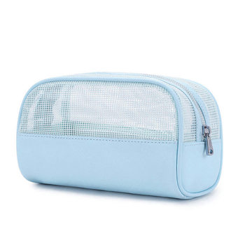 Moda örgü ekleme makyaj çantaları su geçirmez PVC saklama çantası taşınabilir düz renk kozmetik çantası